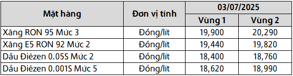 Mức giá mới có hiệu lực từ thời điểm 15 giờ 00 phút ngày 03 tháng 07 năm 2025 cho đến kỳ điều hành giá xăng dầu tiếp theo của liên Bộ Công Thương – Tài Chính, được công khai tại website hpetro.vn.