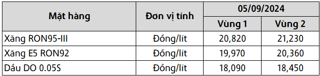 Mức giá mới có hiệu lực từ thời điểm 15 giờ 00 phút ngày 05 tháng 09 năm 2024 cho đến kỳ điều hành giá xăng dầu tiếp theo của liên Bộ Công Thương – Tài Chính, được công khai tại website hpetro.vn.
