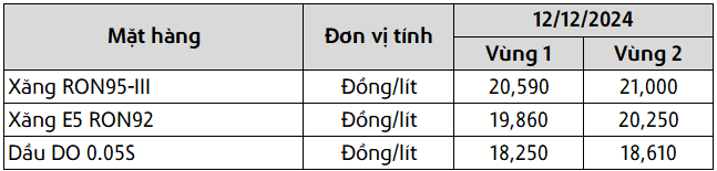 Mức giá mới có hiệu lực từ thời điểm 15 giờ 00 phút ngày 12 tháng 12 năm 2024 cho đến kỳ điều hành giá xăng dầu tiếp theo của liên Bộ Công Thương – Tài Chính, được công khai tại website hpetro.vn.