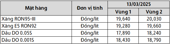 Mức giá mới có hiệu lực từ thời điểm 15 giờ 00 phút ngày 13 tháng 03 năm 2025 cho đến kỳ điều hành giá xăng dầu tiếp theo của liên Bộ Công Thương – Tài Chính, được công khai tại website hpetro.vn.