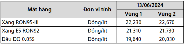 Mức giá mới có hiệu lực từ thời điểm 15 giờ 00 phút ngày 13 tháng 06 năm 2024 cho đến kỳ điều hành giá xăng dầu tiếp theo của liên Bộ Công Thương – Tài Chính, được công khai tại website hpetro.vn.