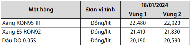 Mức giá mới có hiệu lực từ thời điểm 15 giờ 00 phút ngày 18 tháng 01 năm 2024 cho đến kỳ điều hành giá xăng dầu tiếp theo của liên Bộ Công Thương – Tài Chính, được công khai tại website hpetro.vn.