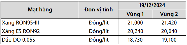 Mức giá mới có hiệu lực từ thời điểm 15 giờ 00 phút ngày 19 tháng 12 năm 2024 cho đến kỳ điều hành giá xăng dầu tiếp theo của liên Bộ Công Thương – Tài Chính, được công khai tại website hpetro.vn.