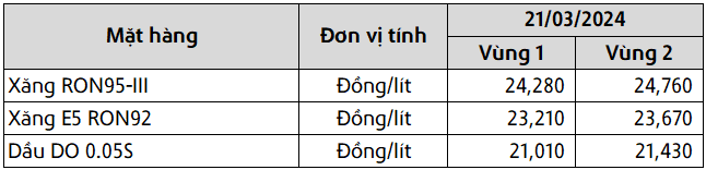 Mức giá mới có hiệu lực từ thời điểm 15 giờ 00 phút ngày 21 tháng 03 năm 2024 cho đến kỳ điều hành giá xăng dầu tiếp theo của liên Bộ Công Thương – Tài Chính, được công khai tại website hpetro.vn.
