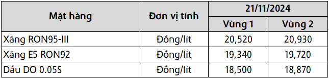 Mức giá mới có hiệu lực từ thời điểm 15 giờ 00 phút ngày 21 tháng 11 năm 2024 cho đến kỳ điều hành giá xăng dầu tiếp theo của liên Bộ Công Thương – Tài Chính, được công khai tại website hpetro.vn.